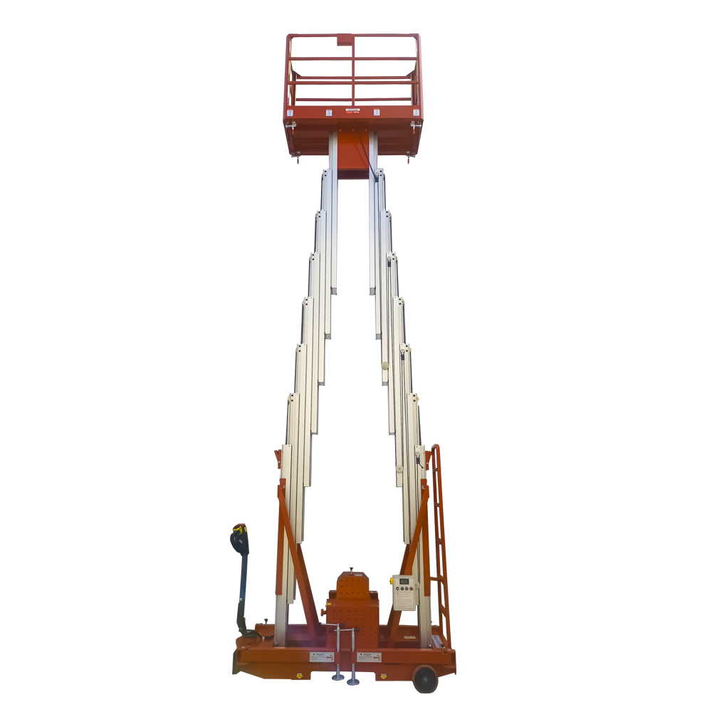 Алюминиевая двухмачтовая рабочая платформа Chinlift Предназначен для подъема рабочих с необходимыми инструментами на рабочую высоту до 12 метров. Уникальная конструкция подъемной мачты обеспечивает превосходную устойчивость, делая работу более безопасной и легкой. Питание от сети переменного или постоянного тока является опциональным.