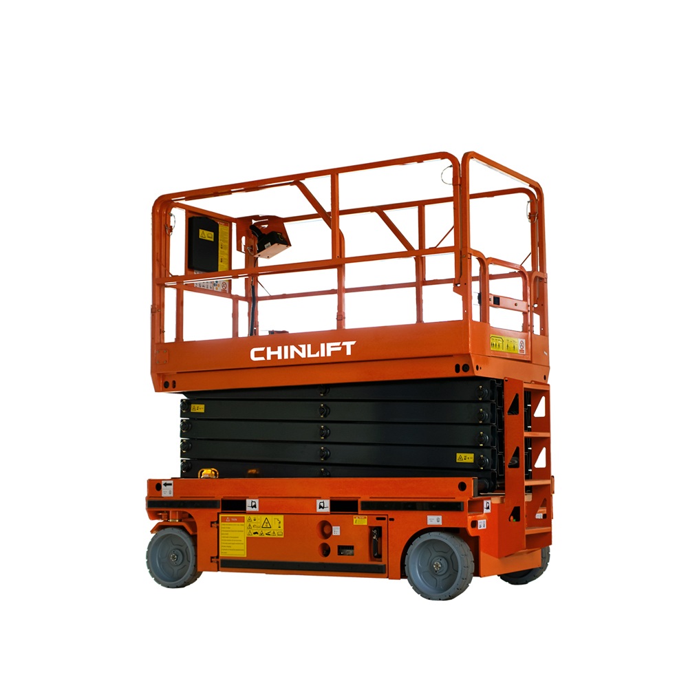 Самоходная платформа Chinlift Это экологичный способ подъема рабочих и тяжелых грузов на рабочую высоту до 14 метров. Он оснащен электрической рукояткой управления, что делает перемещение более легким и удобным. Благодаря бесшумной работе и отсутствию выбросов, эти мобильные электрические ножничные подъемники подходят для использования как в помещении, так и на открытом воздухе.